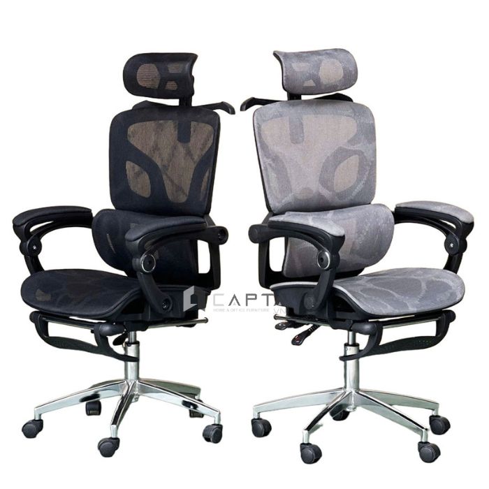 Ghế văn phòng lưng lưới cao CR03001-M là mẫu ghế công thái học được thiết kế dành cho môi trường làm việc chuyên nghiệp, giúp cải thiện tư thế ngồi, hỗ trợ cột sống và mang lại sự thoải mái tối ưu trong suốt ngày dài làm việc. Mẫu ghế sở hữu thiết kế lưng lưới thoáng khí, có tựa đầu, gác chân nghỉ trưa và nhiều tùy chọn chân ghế phù hợp mọi không gian. Hãy cùng nội thất Capta tìm hiểu ngay dưới bài viết này nhé.